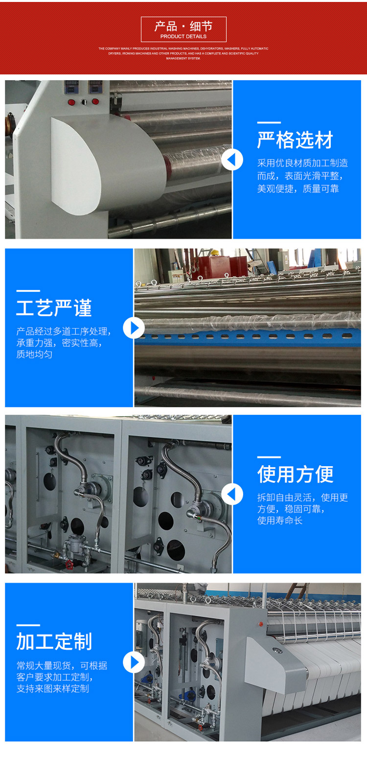 醫(yī)用燙平機(jī)烘筒采用直熱式,有效熨平面積利用率超過四分之三。
