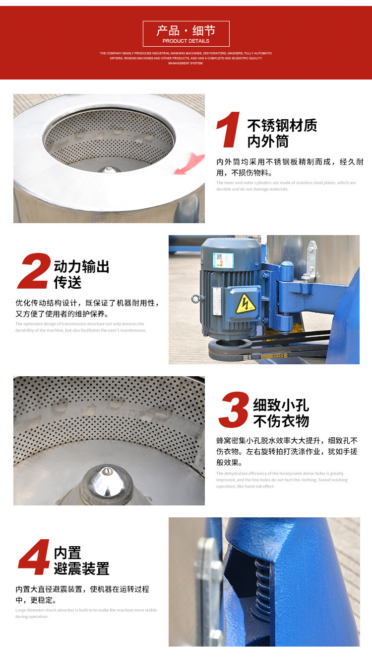 我公司專注于工業(yè)洗衣機(jī),脫水機(jī),水洗機(jī)等洗滌設(shè)備的生產(chǎn),同時(shí)我司為特殊用戶訂制非標(biāo)洗滌機(jī)械。熱忱歡迎廣大客戶來(lái)電咨詢產(chǎn)品信息。